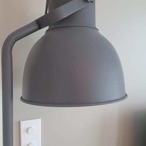 Bordlampe i grått og stål selges. Den er mulig å dimme og pære følger med. Passer fint både på nattbordet eller skrivebordet. Selges pga.plassmangel.