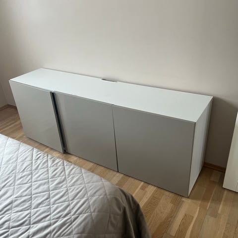 Selger en Tv benk fra Ikea. Må selges fordi vi flytter inn i ny leilighet. Målene til benken finnes på siste bilde. Dørene på benken er litt skeiv, men ikke noe som påvirker funksjonaliteten. Dette kan også fikses ved å legge noe smått (ikke synlig) under venstre dør slik at alle dørene retts opp. Den ble kjøpt for 7 mnd siden og er derfor ellers i god stand. Selges også betydelig under standardpris pga. dørene, noe som kan fikses enkelt som nevnt ovenfor.