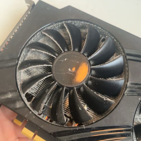 Kortet kjøres kjølig og stille takket være den solide kjøleløsningen med to vifter. Har aldri blitt brukt til overklokking eller mining – kun vanlig bruk til gaming på 1080p.