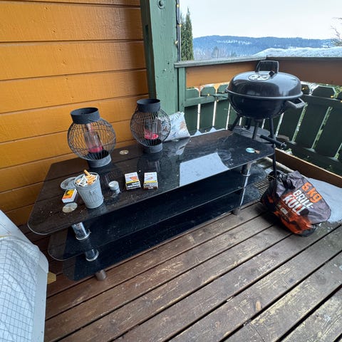 3stk spisestoler, stålampe, utemøbler og gassgrill gis bort. Førstemann som henter tar det med seg, ingenting blir reservert.