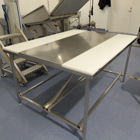 Rustfri plate/bordet har utskjæring for nedfelling av kum, vannbad eller annet kjøkkenutstyr kr 2500
