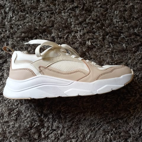 Selger ett par med sneakers fra Jean paul i str 37. Kun blitt brukt en gang og har en flekk på helen som man kan se. Flekken går nok bort ved vask. Selges da de ikke passer føttene mine. Nypris ligger på rundt 699kr.