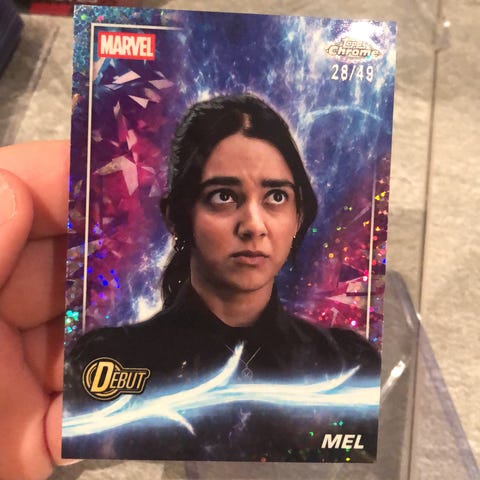 Marvel Debut Bullseye samle kort med autograf. Kortet viser figuren Bullseye og har trykket Marvel-logo øverst. Kortet er signert på forsiden og ligger i plastlomme/beskyttelse. Egner seg som samleobjekt for Marvel- og superheltkort.