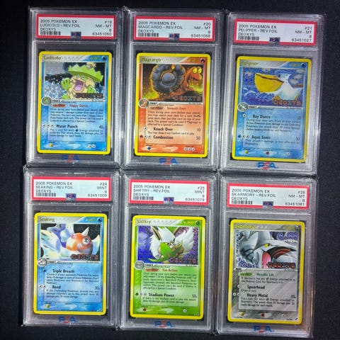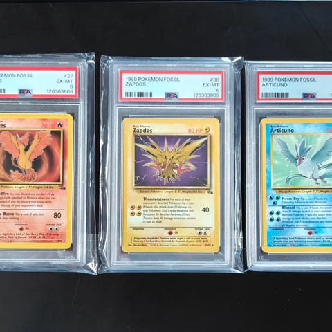 Nydelig sett med noen av de første pokemon kortene som ble lansert vurderes solgt, produsert for 30 år siden.