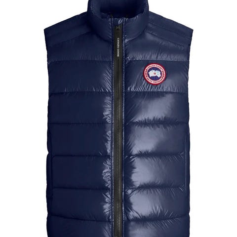 Vest til herre fra Canada Goose laget i lett og slitesterkt Feather-Light Ripstop-materiale med dunfyll og vannavvisende overflate. Vesten er vindtett, pakkbar og perfekt for reise og tur i skiftende vær.
