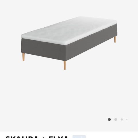 IKEA SKAUPA FLYA enkeltseng i grå utførelse. Rammemadrass med rette linjer og avtagbar overmadrass. Sengen leveres med ben (oppgitt som svarte i bildet). Egnet som enkeltseng på soverom, gjesterom eller hybel.