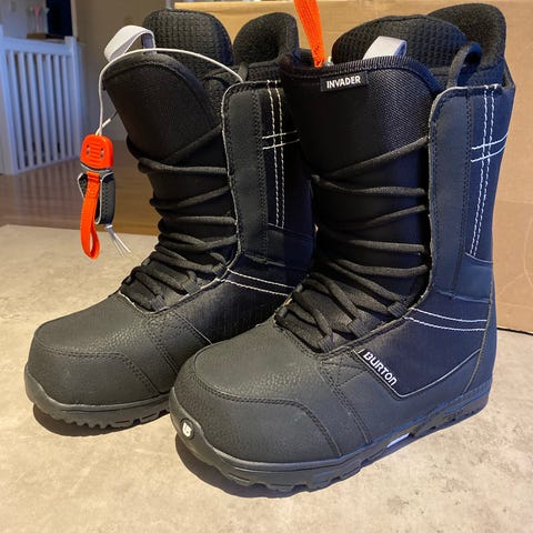 Burton Ambush Smalls snowboardstøvler, juniormodell. De er str 38, men passer str 36 til 37. De er små i størrelsen på lengde, bredden er normal til bred, med gode snøremuligheter, to-lags snøresystem som er veldig bra og enkelt å bruke. Supre støvler som er pent brukt og ser freshe ut.