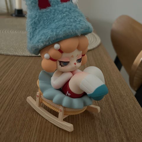 Søt Chino Kafuu animefigur sittende på en kattepute. Fra animeserien "Is the Order a rabbit?" Fine detaljer men ikke official.