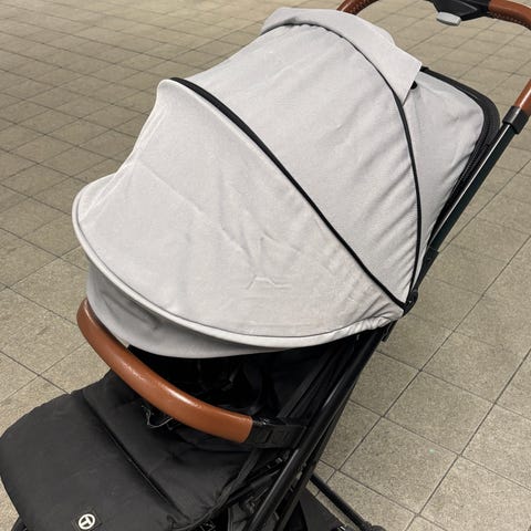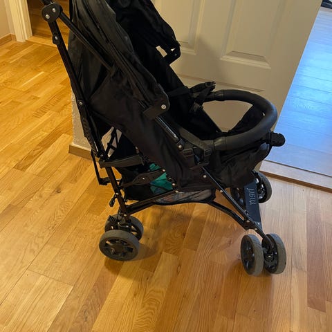 Barnevogn trille i svart farge. Vognen har enkel ramme med sitteenhet og kalesje. Under setet er det oppbevaringskurv. Trillen er egnet til bruk for små barn på korte turer eller som ekstra vogn. Passer som lett og sammenleggbar løsning når man har begrenset plass.