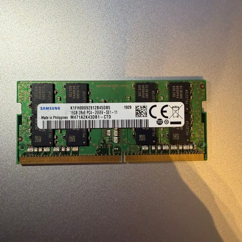 Selger 16GB DDR4 SODIMM minne fra SK Hynix.