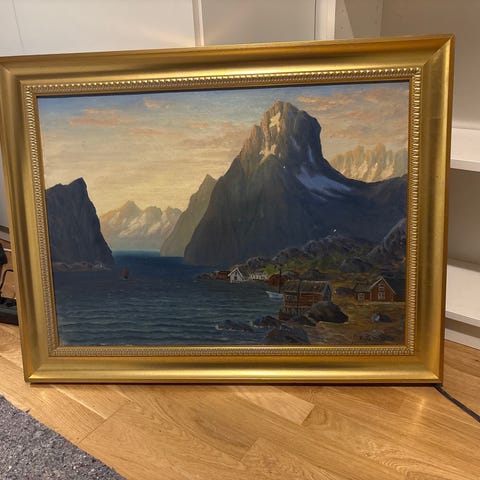 Signert landskapsmaleri olje på lerret med treramme