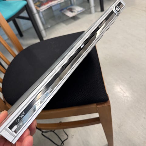 Denver, DVD-spiller, DVD player, CD-spiller, MP3 player, SCART, Retro, Vintage electronics, Home cinema, Media player, Silver DVD player, Hjemmekino, Analog video, S-Video, Coaxial audio, 2000s tech, Elektronikk, Denver DVD-142, Gjenbruk, Billig DVD