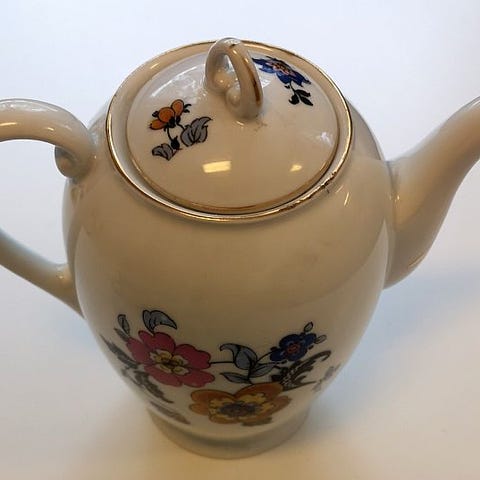 Porsgrunn porselen. Eldre sukkerskål med fargerikt mønster. Høyde 10 cm, diameter 9 cm. I god stand!