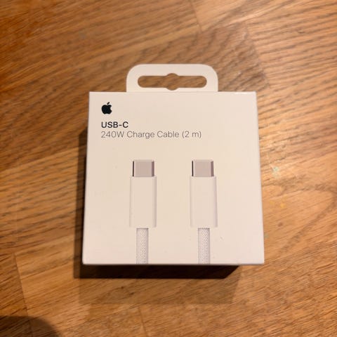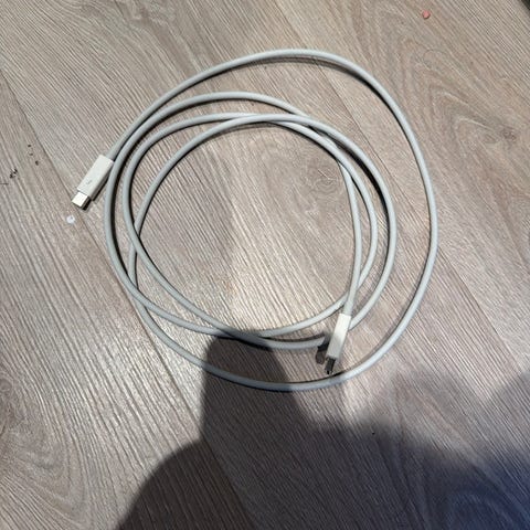 Apple Thunderbolt Cable datakabel med Thunderbolt-til-Thunderbolt-tilkobling. Kabelen er 2 meter lang og i hvit farge. Egnet som tilleggsutstyr for tilkobling mellom kompatible Mac-maskiner, skjermer og lagringsenheter som støtter Thunderbolt-grensesnittet.