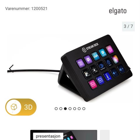 Loupedeck konsoll tilleggsutstyr i svart. Enheten har flere dreiehjul, programmerbare knapper og et felt med trykktaster. Beregnet som tilleggsutstyr til datamaskin for styring av ulike funksjoner i programvare, for eksempel redigering eller kontroll av arbeidsflyt. Tilkobles vanligvis datamaskin via kabel (ikke synlig på bildet). Egnet for bruk på skrivebord sammen med tastatur og mus.