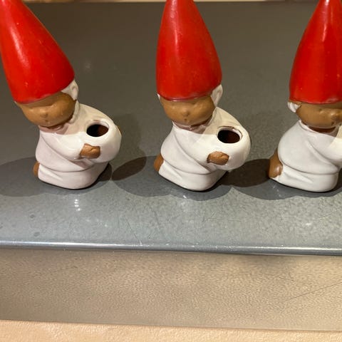 6 fine Nisse serviettringer i keramikk til et julepyntet bord. I fin stand. Ikke brukt.