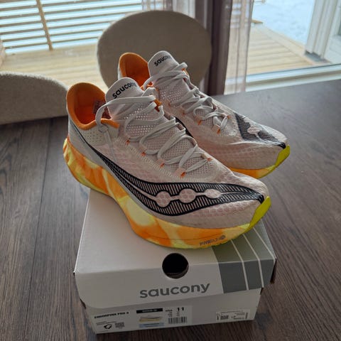 Helt nye i eske i størrelse 40,5 (26 cm). Det er damemodell, men ikke opplevd noe forskjell fra herremodellen så de kan fint brukes av begge kjønn. En meget god karbonsko med en vekt på 194 gram.