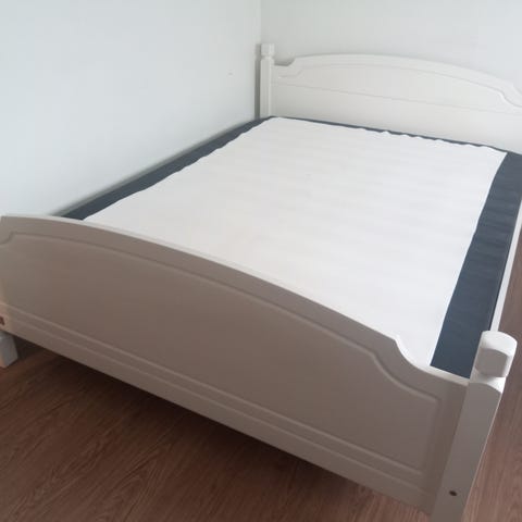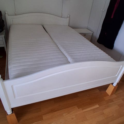 Selger en dobbeltseng med madrass av merket Grusnarv. Både seng og madrass er pent brukt. Det er to store skyveskuffer under senga som er praktisk for oppbevaring.