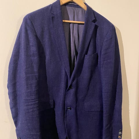 Matinique blazer for herre i størrelse L. Jakken er laget i lin og har blå farge. Klassisk modell med slag, to knapper i front og lommer. Passer til både formelle og uformelle anledninger, og kan kombineres med skjorte eller t‑skjorte avhengig av stil og behov.