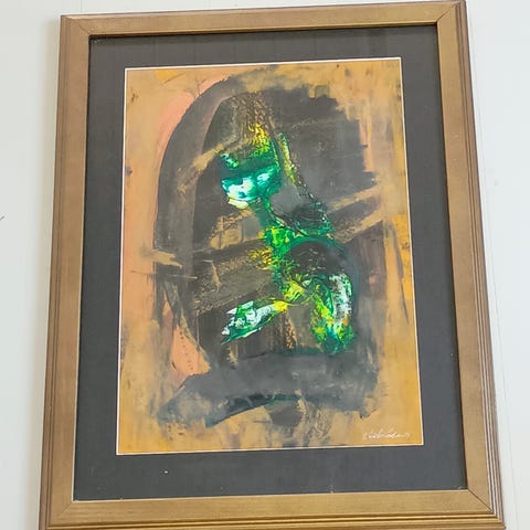 Fikk med en del malerier og tegninger etter kjøp av hittegodsparti. Kan selges samlet eller separat om ønskelig, et par av maleriene har rifter i seg.