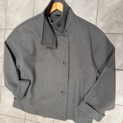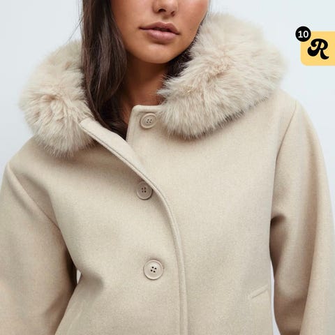 Gina Tricot jakke for dame i størrelse L. Jakken er beige og laget i polyester med teddy-/fuskepelsstruktur. Modellen har krage, lange ermer og kortere, rett passform. Egnet som ytterjakke i overgangssesonger eller på kjølige dager.