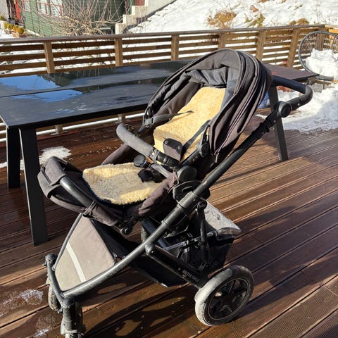 Vognen ble kjøpt ny i 2022 og er brukt av 2 barn - så den har noen bruksmerker. Men den har alltid blitt oppbevart tørt inne i gang. Fotstøtten på sittedelen er veldig treg og fungerer dårlig. Ellers fungerer alt som det skal. Hjulene bak er nylig skiftet.
