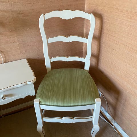 To stk-sette bordet og to pynte stoler med ny trekk selges for 1800 kr til sammen . Det går an å kjøpe enten bordet eller stoler! Pris per stol -bord 500 kr-