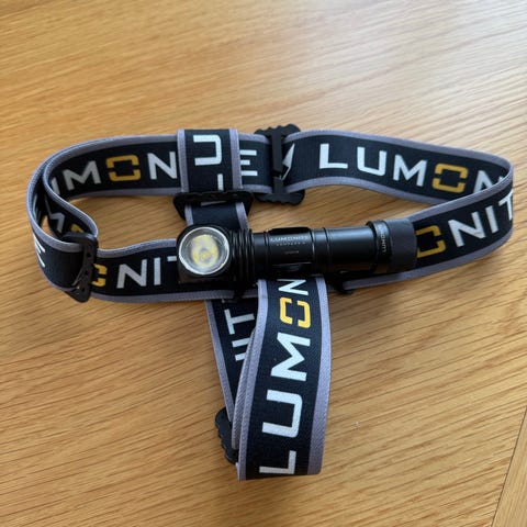 Pent brukt hodelykt på 12 000 lumen selges. Denne hodelykten produseres ikke lenger. Norsk produkt.