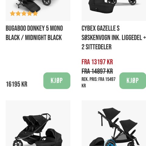Cybex Gazelle S søskenvogn i svart. Vognen er en barnevogn/kombivogn konstruert for to barn, med mulighet for både liggedel og sittedel. Den har justerbare seter og kan tilpasses ulike behov etter barnas alder. Store hjul og ramme gir stabilitet ved bruk på ulike underlag. Egnet til daglig bruk som søskenvogn eller tvillingvogn, med plass til oppbevaring under setene.