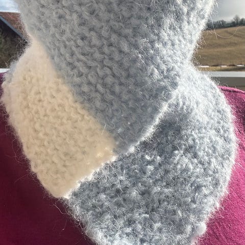 Hjemmestrikket hals, buff i 100% australsk ull. Fargen er vinrød, burgunderfarge.