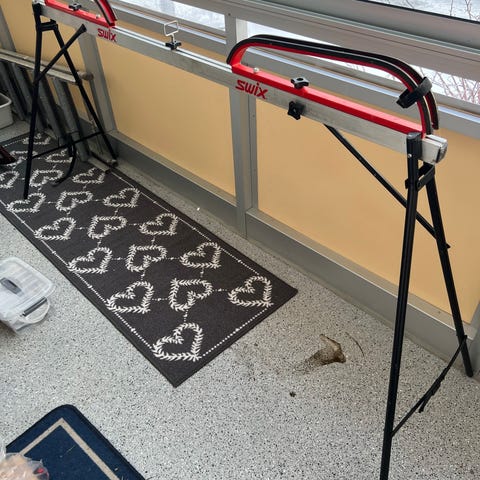 120x35cm. I topp stand. Bare litt rester av glider og maling på bordplate