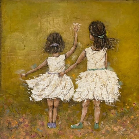 De tre venninnene malt av Heidi Nystad. Det er malt på lerret med dyp ramme. Måler 120x80. Acryl med mye struktur.