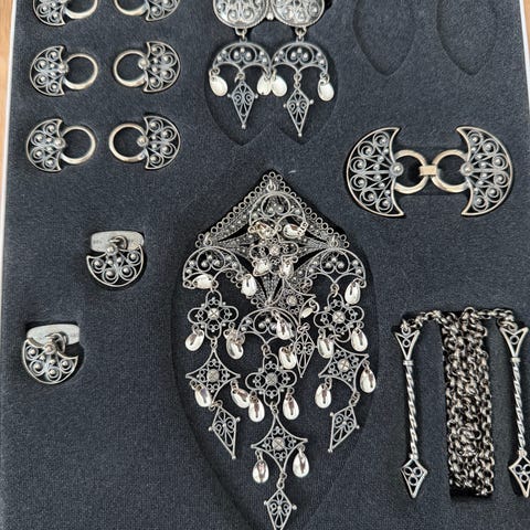 Se bilde - Sølje, gudbrandsdalknapp, øredobber, ring og mansjettknapper