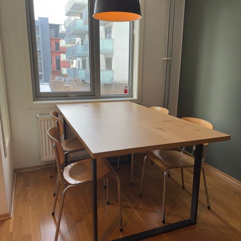 Det mangler én skrue på bordet, men det påvirker ikke stabiliteten eller bruken.