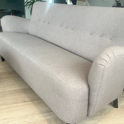 Pent brukt kjøkkensofa. Veldig god å sitte i, ikke nedsåtte. Har dessverre fått en kaffeflekk. Har ikke forsøkt å fjerne den med skikkelig rens. Mål kommer. Må hentes.