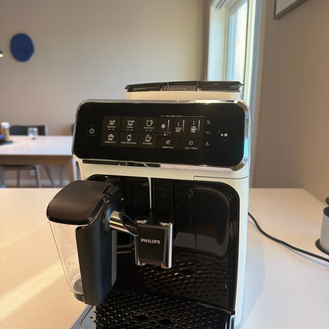 Philips helautomatisk kaffemaskin i svart utførelse. Maskinen har berøringspanel i front med flere forhåndsinnstilte kaffedrikker og justerbare innstillinger. Integrert melkebeholder på siden for tilberedning av kaffedrikker med melk. Avtagbart dryppbrett i front for enkel rengjøring. Den kverner bønner selv.