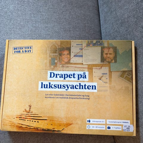 Detective For A Day brettspillpakke med fire ulike etterforskningsspill: Drapet på kultmedlemmene, Bankranet, Drapet på verdensturneen og Drapet på luksusyachten. Hvert spill er utformet som en realistisk drapsetterforskning eller krimsak der spillerne går gjennom bevismateriale, dokumenter og spor for å løse saken. Spillene kan spilles i gruppe og egner seg for personer som liker krim og logiske utfordringer. Pakken inneholder fire separate spillbokser med hvert sitt scenario og tilhørende materiell.
