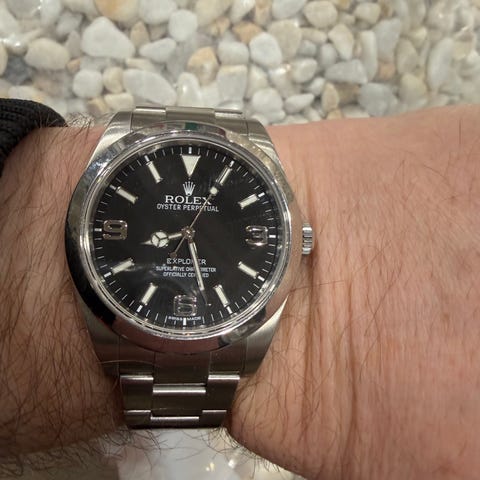 Meget nydelig og godt ivaretatt Rolex Explorer I med attraktivt svartskibe som passer utmerket klokken. Dette er en sjeldent rolex explorer fra 1995 som er i meget stand både teknisk og kosmetisk. Stram og fin lenke. Sertifikatet er blitt borte i årenes løp, men det følger med verdtitakst for å forsikre uret.