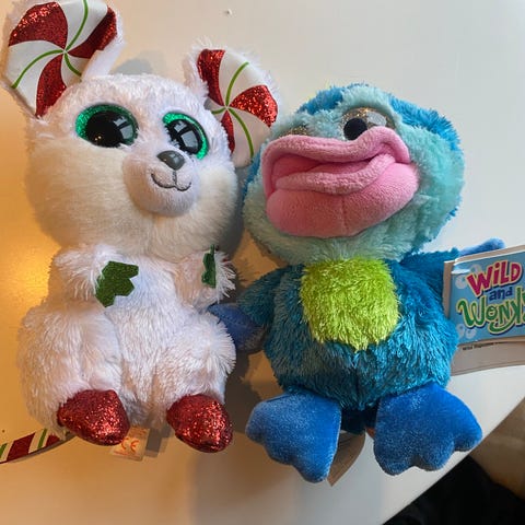 myk kosedyr i blå farge. Laget av mykt materiale, egnet som leketøy eller samleobjekt.