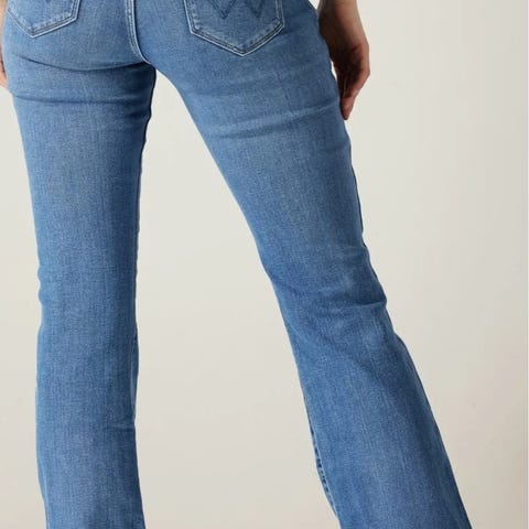 Wrangler Flare jeans for dame i blå denim. Buksen er laget av bomull og har vidde nede i bena (flare). Størrelse W33 L32 tilsvarer dame størrelse XL.