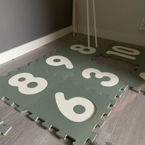 Puslematte med tall fra Clas Ohlson, to sett. Kan settes sammen til én stor matte. Pent brukt av ett barn, mye brjk igjen.