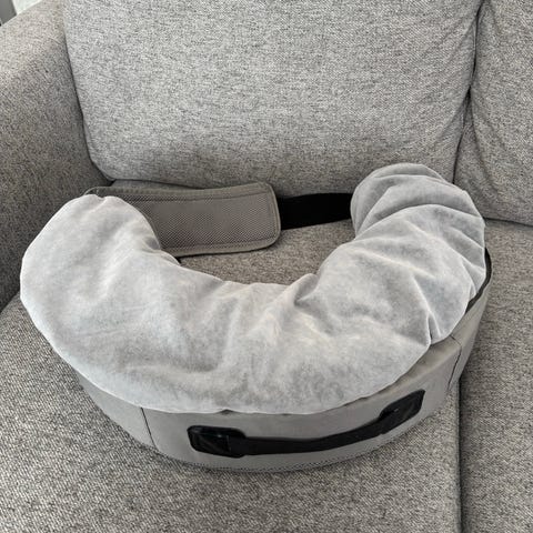 Genial ammepute, pent brukt i noen uker til ett barn. Reddet ammingen i de første ukene 🫶🏼 Selger da jeg fikk tvillinger denne runden og trengte en annen. Cozyfix ammepute i halvmåneform, i svart og grå farge. Puten festes rundt kroppen med stropp og gir støtte ved amming eller flaskemating. Formen gjør at den kan legges tett inntil kroppen og gir stabil støtte til barnet. Trekket er i et mykt tekstilmateriale og kan tas av med glidelås. Egner seg til bruk i seng, sofa eller stol for å avlaste armer, skuldre og rygg under mating.