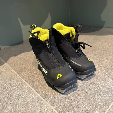 Fischer langrennsstøvler i svart og gul farge. Støvlene har høy ankelstøtte med borrelåslukking øverst og glidelås over vristen. Yttersålen er tilpasset moderne langrennsbindinger (NNN-lignende system) med god friksjon under foten. Overdelen er i syntetisk materiale med forsterkninger i tå- og hælparti. Egner seg til klassisk langrennstrening og turbruk.