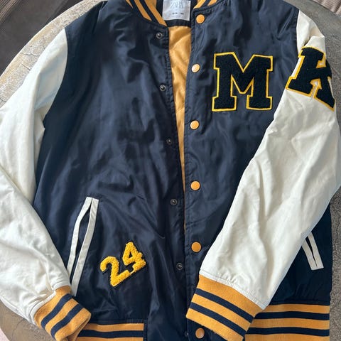 Selger en fin og kul college genser/jakke til 150kr. Mørkeblå med hvite ermer. Normal i størrelsen, men selger den ettersom jeg har blitt større i kroppen og har gått over til 3XL. Kun brukt høst 2025. Så godt som ny.