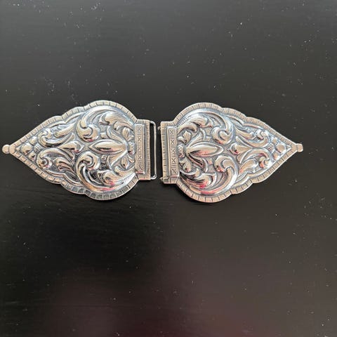 Det er sydd en veske i et stoff jeg ikke kjenner igjen.