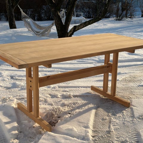 Massivt bord i heltre kvistfri furu. Kun såpevasket! Fantastisk flott solid og stabilt bord med plass til mange. Bordplata er 5cm tykk!