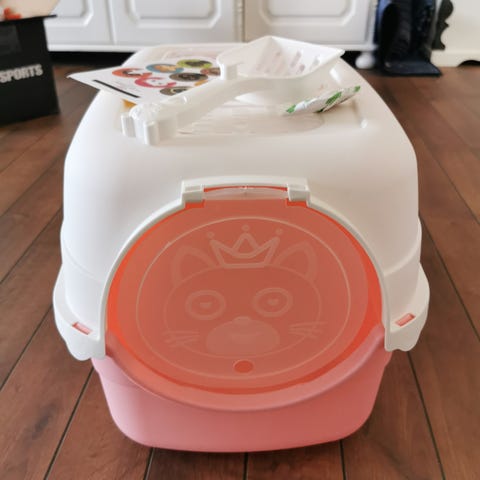 Hvis kattedoen skal stå synlig fremme så er dette kattetoalettet et veldig godt alternativ. Kattedoen er i solid kvalitet, og er stilig formet som en søt katt med katteører. En uttrekkbar skuff gjør det meget enkelt å komme til sanden og for å rengjøre. En bred terskel gjør at katten tråkker av seg mye sand når den går ut av toalettet. En vippe-katteluke i åpningen forhindrer at sanden blir sparket ut på gulvet, og et transporthåndtak er integrert på toppen av kattedoen for enkel transport. I tillegg medfølger det kattespade. Kattedoens størrelse er: L:52cm, B:42cm, H:39,5, og lukens størrelse er: 22cm x 22cm.
