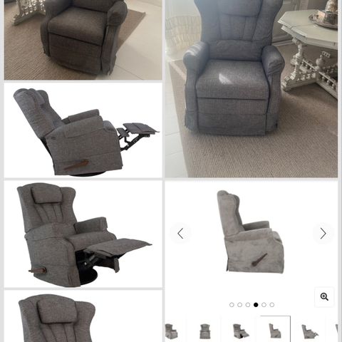 Meget pent, og ubetydelig brukt. Kjøpt for 1 år siden på Skeidar for kr 11900. Selges rimelig pga plassmangel. Leah recliner. Flott og romslig lenestol. God sittekomfort. Håndtak på siden for enkel betjening av fothviler. Sort svingplate med 360 grader sving. Intregrert fothviler.
