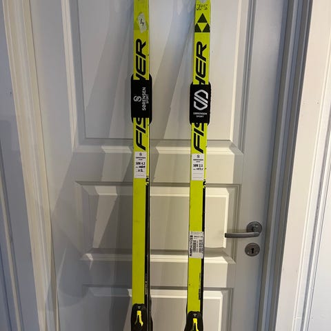 Fischer skin ski for junior/barn. Skiene er årets modell og brukt 5 ganger. Selges da junior kun skøyter. Skiene er i god stand og lite merker i glidsone på ski. Oversiden av skien har noen kosmetiske merker her og der. På skiene står det 30-38 kg. Han som har brukt de er 32 kg og da har det vært spikerfeste. Vil tippe 28-35 er mer rett, opp mot 38 kg vil nok gliden være dårlig. Skiene er nyglidet.