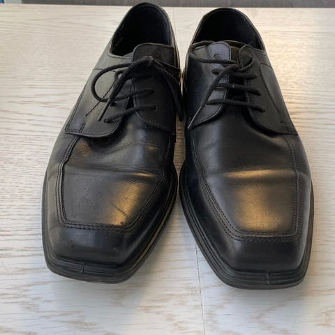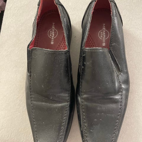 Selger et par Kingsmen pensko. Skoene er pent brukt, uten synlig slitasje eller merker. Ifølge husets tenåring, er de behagelige å ha på.
